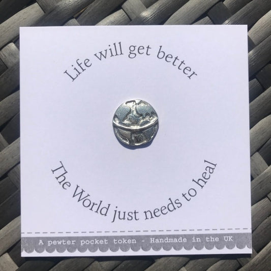 Good Luck Solid Pewter Heart Keepsake Pebble