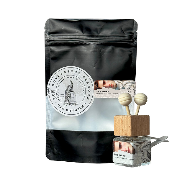 Introducing the Duke from our Regency Collection - a seductive leather scent with notes of saffron, raspberry, and thyme. Feel empowered with its hint of olibanum and night blooming jasmine, while indulging in the richness of leather, black suede, and amberwood.