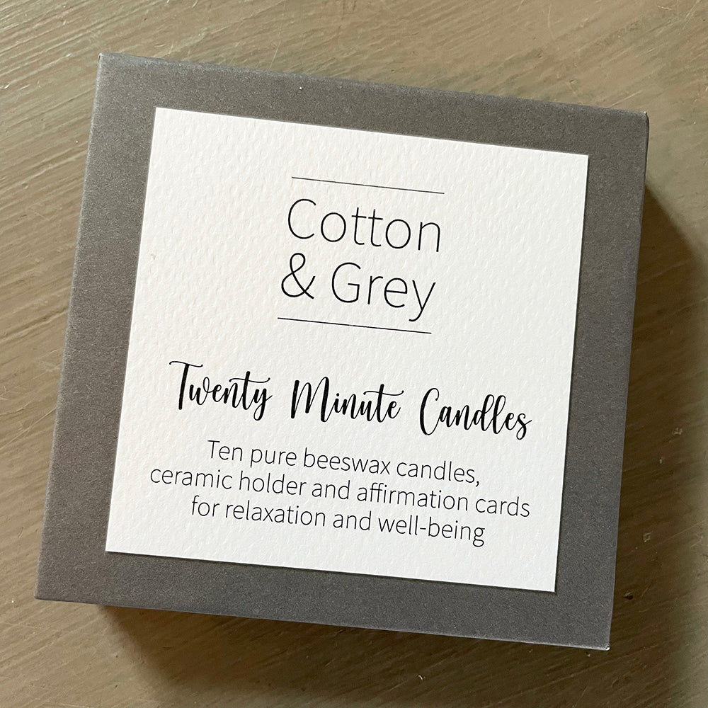 Set aside precious time for yourself with these lovely handmade pure beeswax relaxation candles from Cotton & Grey. They are designed to help you capture and cherish quality time. Each candle burns cleanly for twenty minutes, allowing you to focus on the flickering flame, helping you relax and restore your inner calm.