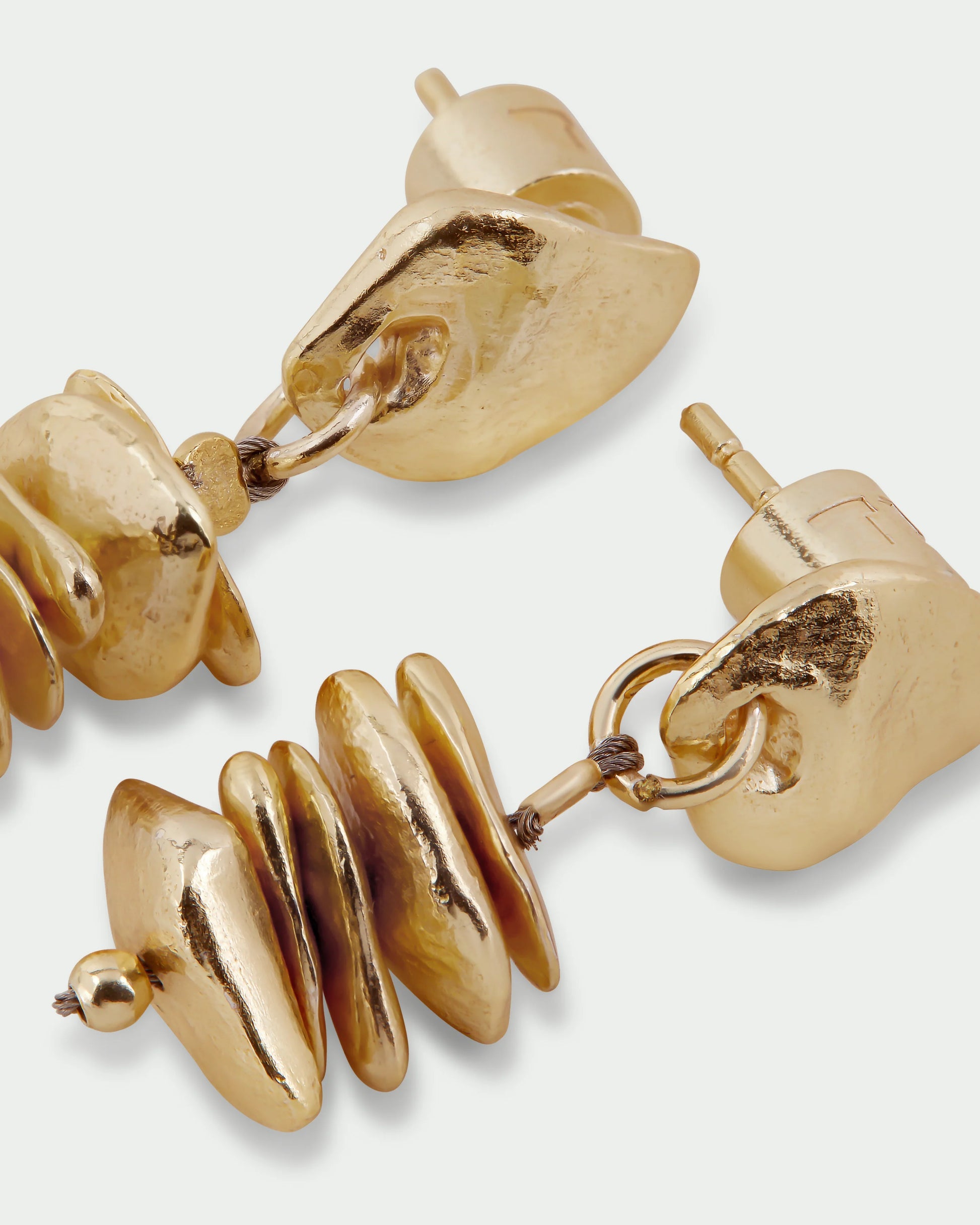 Elevate your style with the Row Earrings Gold—crafted from stunning gold-plated materials, these organic multi-disc drop earrings blend a textured and polished finish for a truly unique look. Embrace the beauty of individuality and let your accessories shine with confidence! Perfect for making any outfit extraordinary!