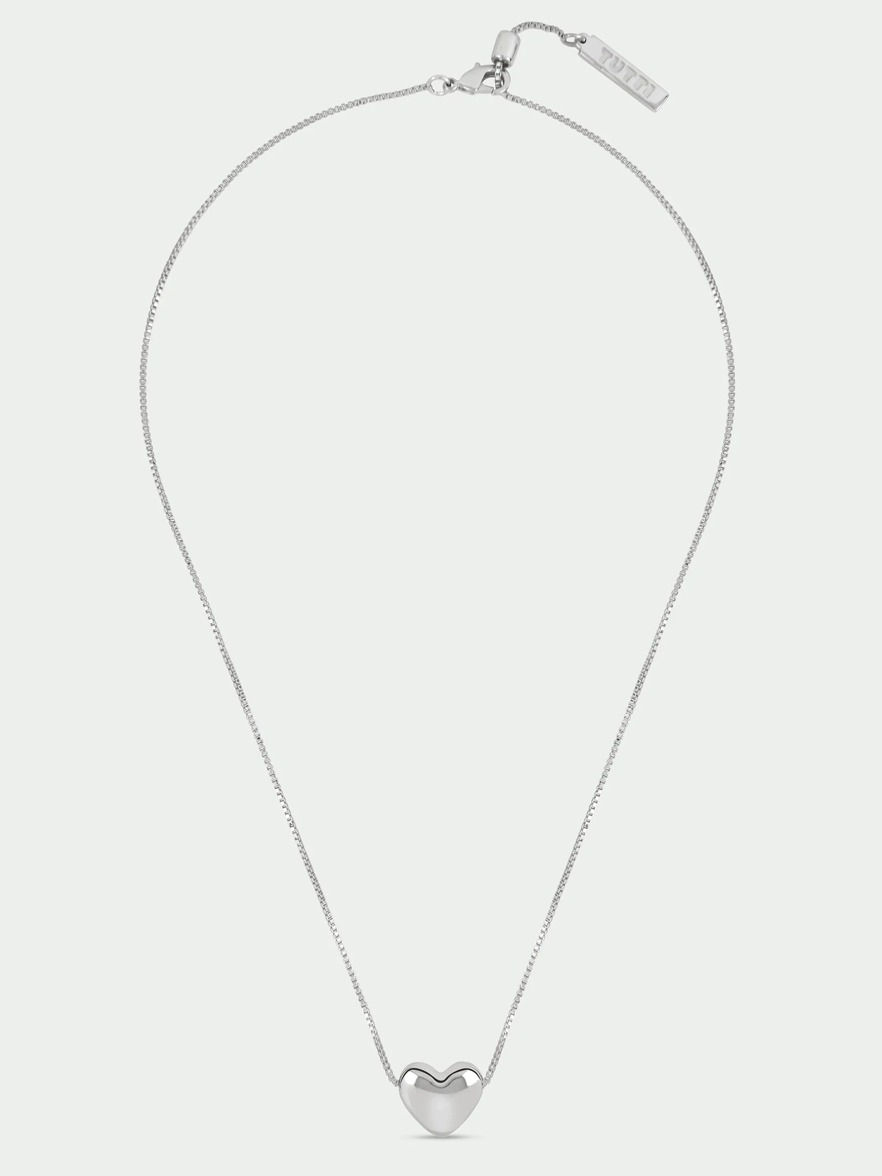 Embrace a symbol of love and connection with the Promise Necklace in Silver. Its polished heart pendant radiates warmth, while the adjustable slider bead allows you to customize the length for a perfect fit. Elevate your style and express your heartfelt promises with this exquisite piece!