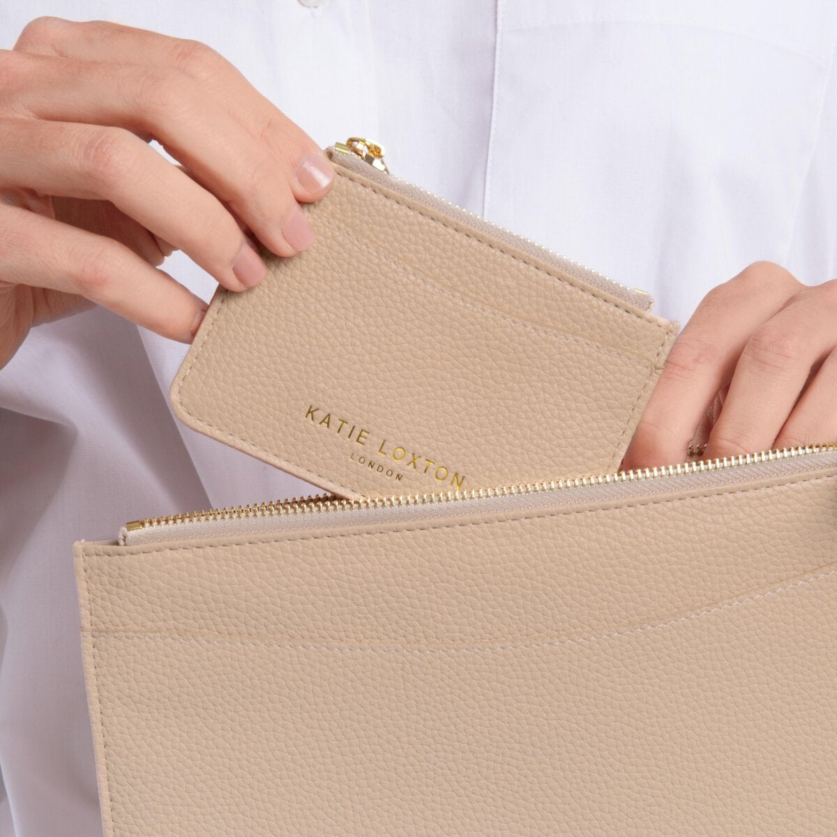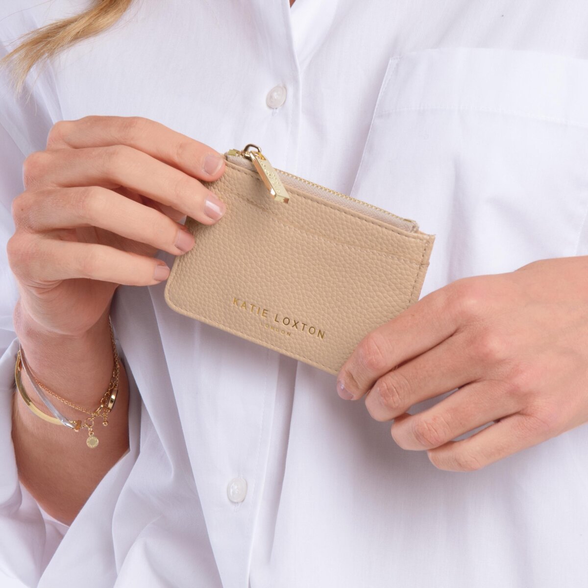 The from Cara Cardholder in pink from Katie Loxton has been designed for every girl on-the-go to enjoy! This luxury design features an embossed logo stamp, chic slit compartment at the front and gold-tone top zip fastening.