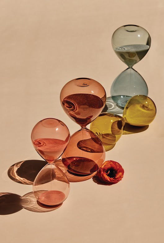 Find the time to work through a tough task or to take a moment for yourself with this elegant Smoky Quartz Hourglass. Add this beautiful glass accessory to your desk or counter as a mindful way to keep track of the passing moments.