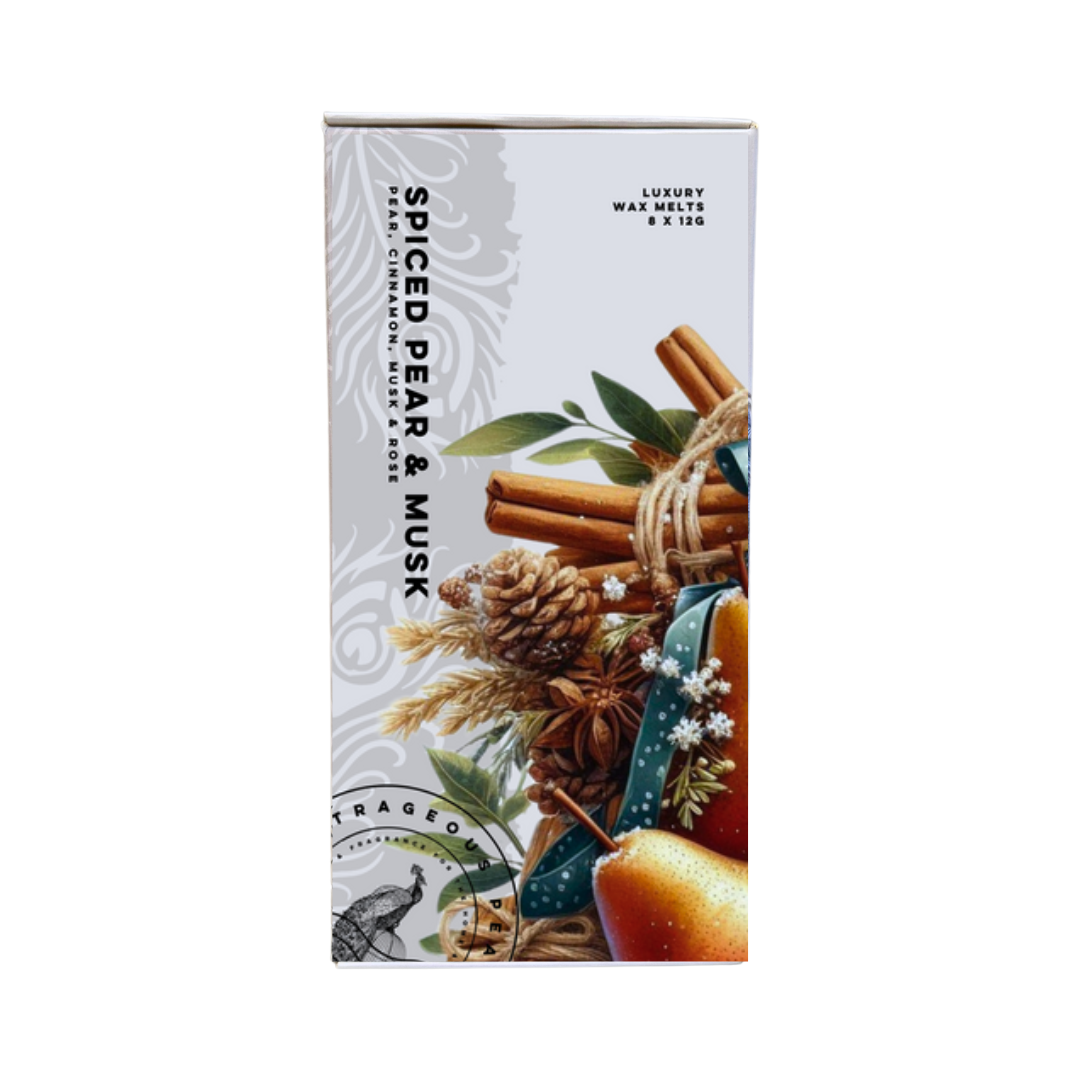 Indulge in the luxurious scent of Spiced Pear & Musk Wax Melts. Enjoy the warm, inviting aroma of ripe pears, enhanced by a spiced musk blend of cinnamon, clove, and nutmeg. Grounded with velvety musk and a touch of rose, it adds a sophisticated touch to any room. (Cosy and refined, this scent is sure to elevate your mood!)